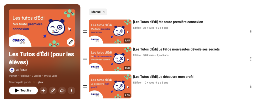 Pour accompagner les élèves, vous pouvez compter sur Edi, notre panda préféré 🐼, et ses tutoriels clairs et accessibles.Et pour les parents d’élèves ? Pensez à partager dès la rentrée la playlist ONE dédiée aux familles : un excellent moyen de les rendre autonomes et à l’aise avec l’ENT.