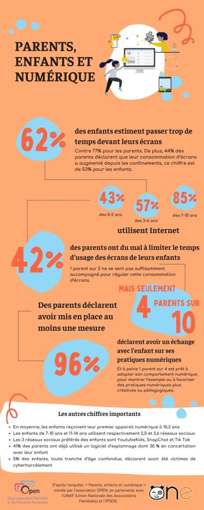 À l’occasion du « Safer Internet Day », on revient sur les chiffres les plus marquants de l’enquête « Parents, enfants et numérique » menée par l’Association OPEN, en partenariat avec l’UNAF (Union Nationale des Associations Familiales) et l’IPSOS.