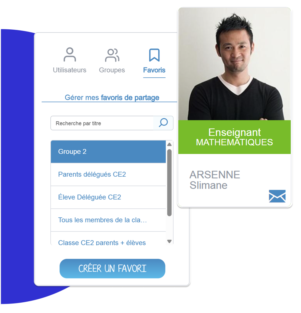 L’onglet “Favoris” vous permet de créer des listes d’utilisateurs et groupes favoris, en plus des groupes créés automatiquement.