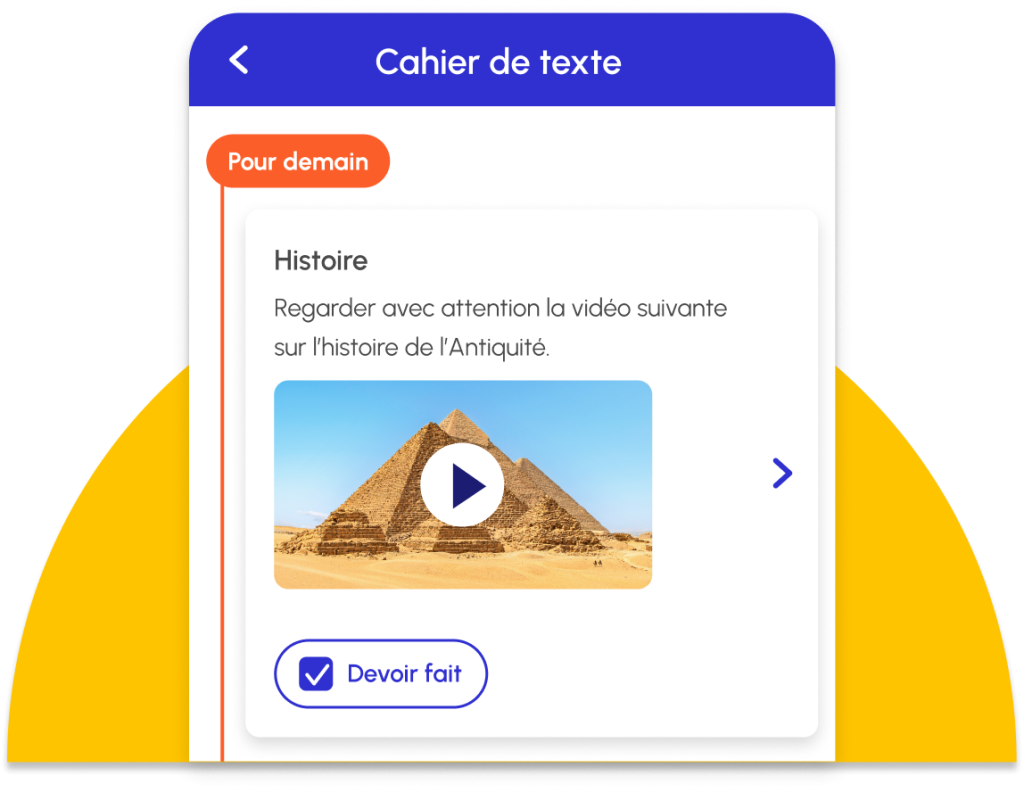 Le Cahier de textes vous permet de partager les séquences de cours réalisées, ainsi que les devoirs à faire pour les cours suivants.