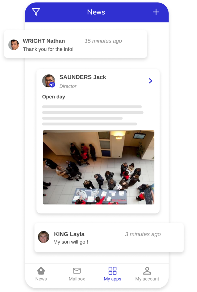 Use the News application to announce upcoming open houses, create a student-led blog about cultural outings throughout the year, and much, much more! With NEO and its mobile app, communication becomes efficient and manageable!