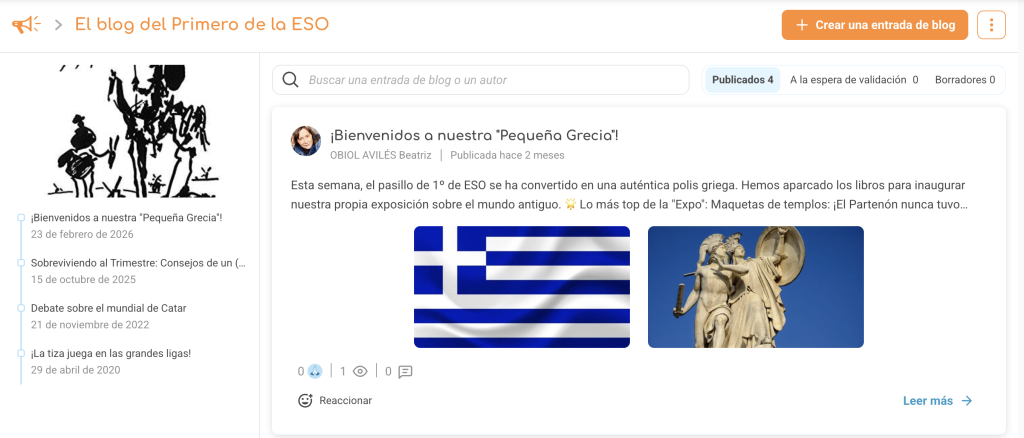 En el centro del dispositivo: un blog de clase actualizado diariamente. Pero aquí no se trataba de un simple diario redactado por el maestro. Cada artículo se construía conjuntamente con los alumnos.