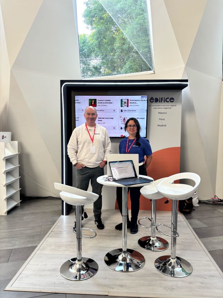 Durante las jornadas, Melina y Carlos recibieron un flujo constante de visitantes en el stand de Édifice, atendiendo numerosas preguntas sobre ONE, el espacio digital dedicado a las escuelas primarias, y NEO, la red colaborativa para colegios y preparatorias. Fue un espacio de diálogo abierto y enriquecedor, donde profesionales de la educación compartieron sus experiencias y desafíos, y exploraron cómo la tecnología puede apoyar el aprendizaje en cada etapa educativa.