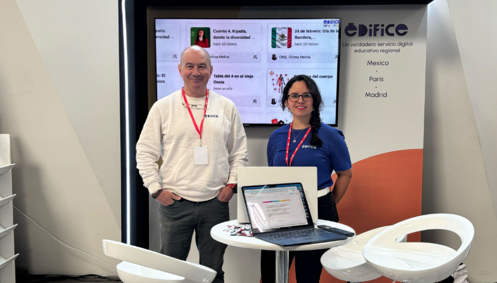 Durante las jornadas, Melina y Carlos recibieron un flujo constante de visitantes en el stand de Édifice, atendiendo numerosas preguntas sobre ONE, el espacio digital dedicado a las escuelas primarias, y NEO, la red colaborativa para colegios y preparatorias. Fue un espacio de diálogo abierto y enriquecedor, donde profesionales de la educación compartieron sus experiencias y desafíos, y exploraron cómo la tecnología puede apoyar el aprendizaje en cada etapa educativa.