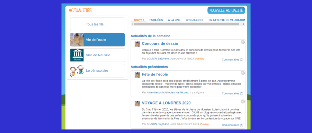 Mercredis de ONE et NEO Communiquer les actualités et les informations importantes de l’établissement
