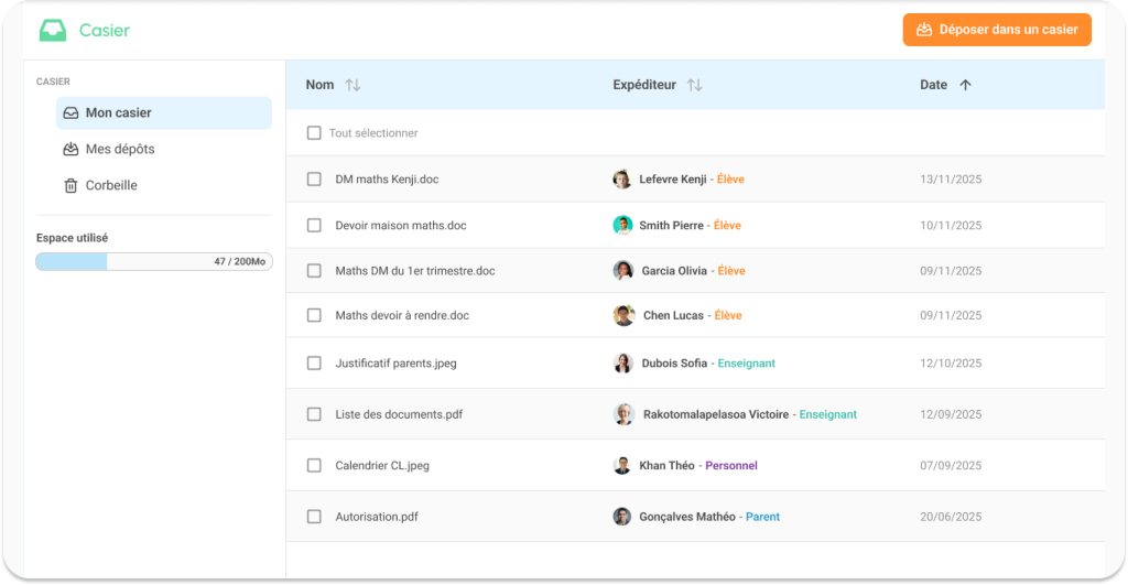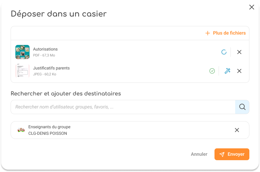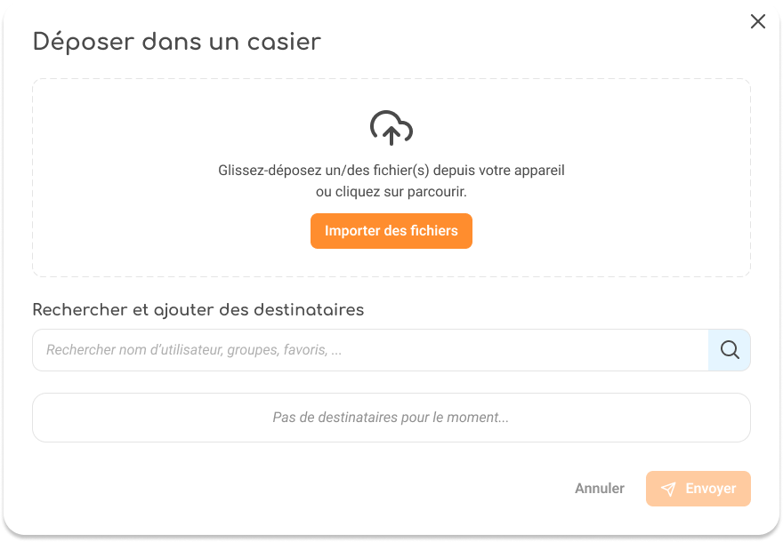 Les fonctionnalités restent inchangées : déposez en quelques clics un fichier dans le casier d’un ou plusieurs autres utilisateurs.